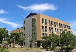 Кампус NDHU площадью 251 гектар (620 акров) является крупнейшим на Тайване университетским городком на равнинной местности, спроектированным в постмодернистском стиле Чарльзом Муром, деканом Йельской школы архитектуры[22][23].