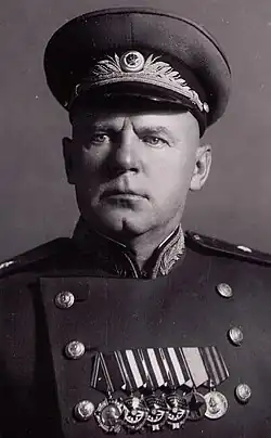 - ↑ Постановление Совета Народных Комиссаров Союза ССР «О присвоении воинских званий высшему начальствующему составу Красной Армии» Архивная копия от 28 февраля 2013 на Wayback Machine СП СССР, 1940 г., № 17, ст. 410.