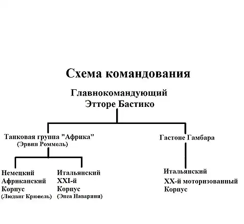 Ниже представлена схема командования военными силами стран «Оси» в Северной Африке в 1941-42 годах.