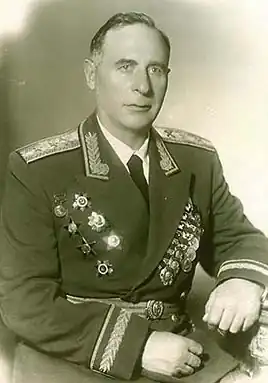- три ордена Ленина (19.12.1941 — за бои под Диканькой и Харьковом[7][12], 1950, 12.12.1957 — за руководство боевым расчётом космодрома при запуске первого в мире искусственного спутника Земли[4][7])