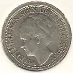 | 1 гульден | 0,45 | Королева Юлиана | 1943 | ||||||