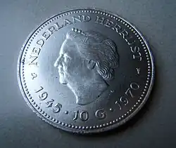 | Номинал: 2½ гульдена | Металл: серебро 945 пробы | Тираж: 6 053 000 | Качество: | |||||