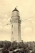 Первый маяк на холме Урбас был построен после присоединения Восточной Пруссии к Германской империи, в 1874 году, и начал работать с 24 октября того же года. Башня маяка имела в плане гексагональную форму и была построена из красного кирпича. Высота первого маяка составляла 27 метров. Дальность видимости этого маяка составляла примерно 20 морских миль (≈37 км).