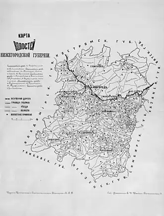 Нижегородская губерния граничила со следующими губерниями: на западе — с Владимирской, на севере — с Костромской и Вятской, на востоке — с Казанской и Симбирской, на юге — с Пензенской и Тамбовской.