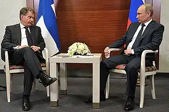Са́ули Вя́йнямё Ни́инистё (фин. Sauli Väinämö Niinistö [ˈsɑu̯li ˈʋæi̯næmø ˈniːnistø]; род. 24 августа 1948[4][5][…], Сало, Турку-Пори[1]) — финский государственный и политический деятель, юрист. Президент Финляндии в течение двух сроков — с 1 марта 2012 года по 1 марта 2024 года (был переизбран в 2018 году)[6].