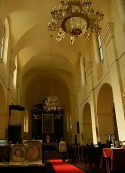 Под пресвитерием была расположена просторная сводчатая крипта, в которой находилось около 30 захоронений, в 1866 году крипта была зарыта.