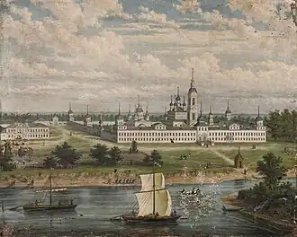 Сохранившиеся до революции здания монастыря (главным из них был Никольский собор) выстроены в XIX веке. В 1861—1867 годах здесь жил на покое святитель Игнатий (Брянчанинов), благодаря которому были изысканы средства на ремонт существующих строений и постройку храма Иверской иконы Божьей Матери. Здесь он вёл уединённую молитвенную жизнь, создал многие известные сочинения («Приношение современному монашеству», «Отечник» и др.), продолжал переписку с духовными детьми. После кончины (1867) он был похоронен около малой больничной церкви Сергия Радонежского.