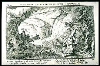 Никтимена (др.-греч. Νυκτιμένη, то есть «ночная») — дочь Эпопея, царя Лесбоса. В неё влюбился её отец и совокупился с ней. От стыда она спряталась в лесах и отказалась показывать свое лицо при дневном свете. Сжалившись над ней, Афина превратила её в сову[2], ставшую впоследствии символом этой богини.