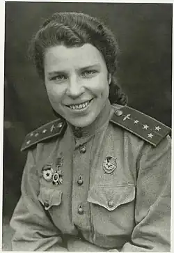 - Командир авиационной эскадрильи гвардии майор Никулина Евдокия (Дина) Андреевна.