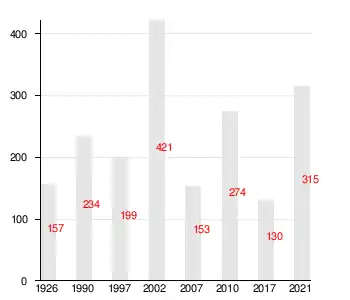 - ↑ Коряков Ю. Б.. База данных «Этно-языковой состав населённых пунктов России. Перепись 2020/21 года». Ленинградская область.