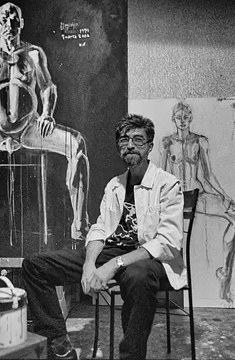 • 1996—Персональная выставка.Аэростат с пиктограммой «Художник и модель».ЦДХ. Галерея «Доминанта». Москва (каталог, альбом);