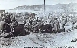 На рассвете 26 марта в Цемесскую бухту вошёл итальянский транспорт «Барон Бек». Люди метались, не зная, где он причалит. Паника достигла апогея, когда толпа бросилась к трапу последнего судна.