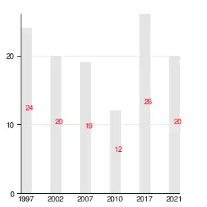 | 1997 | 2002 | 2007[9] | 2010[10] | 2017[1] |