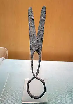 Самые древние ножницы, найденные археологами на современной территории Древнего Рима, имеют возраст 3—4 тысячи лет. Были предназначены для стрижки овец и больше были похожи на небольшой пинцет с двумя тупыми лезвиями на обоих концах. Конструкция просуществовала более двух тысяч лет без принципиальных изменений. Рычаг в ножницах стали использовать около тысячи лет назад.