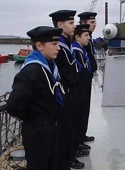 Праздничная форма молодых участников должна указывать на их принадлежность определённому отряду, звание, должность и полученные награды. Праздничная форма состоит из сине-серой рубашки с длинными рукавами, синего шейного платка (у отряда может быть платок своего цвета), форменной шапки, тёмных брюк со «стрелками» и чёрных туфель. Форму носят с чёрными или тёмными носками и с ремнём из чёрной или коричневой кожи или с поясом с эстонским национальным узором[11].
