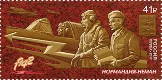 - 6 сентября 2017 года в Российском духовно-культурном центре (1, Quai Branly, 75007, Paris) состоялась торжественная презентация российской и французской марок, посвящённых 75 годовщине основания авиационного полка «Нормандия — Неман»[33].