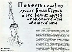 - ↑ http://www.det-book.ru/Dlya-nachalnoiy-shkoly/2971-Rushkis-V.-Povest-o-slavnyh-delah-Volli-Kruusa-i-ego-vernyh-druz.html (недоступная ссылка)