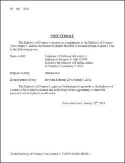 Наиболее распространённый вид. Она может касаться важных, принципиальных вопросов, равно как и рутинных. Содержит различного рода информацию (изменения в дип. персонале), просьбы (выдать визу, решить какой-либо вопрос), может выражать недовольство или вновь привлечь внимание к вопросу, обязывает к официальному ответу. Печатается на нотном бланке с гербом, ставятся индекс и номер ноты. Ноты отправляются адресату от имени МИДа или посольства в 3-м лице (с датой, адресом получателя и печатью вместо подписи) и не подписываются. Текст состоит из трёх частей: 1) вступительный комплимент; 2) содержание ноты; 3) заключительный комплимент