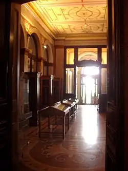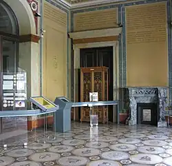 Стены и потолки здания украшает живопись, стилизованная под интерьер дворцов Помпеи, выполненные словенским художником Юрием Шубицем. Помимо фресок, на стены дворца нанесены избранные цитаты из произведений знаменитых древнегреческих поэтов и писателей, таких как, Гомер, Лукиан Самосатский, Пиндар и Гесиод[7].