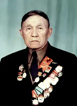 Орден «Октябрьской Революции» (1971 г.) Орден «Отечественной Войны» второй степени (1944 г.) Орден «Трудового Красного Знамени» (1951 г.) Ордена «Знак Почета» (1946 г., 1956 г., 1966 г.) Медаль «За Трудовую доблесть» (1941 г.) Медаль «За доблестный труд в Великой Отечественной войне 1941—1945 г.г.» (1945 г.) Юбилейная медаль «За доблестный труд. В ознаменование 100-летия со дня рождения Владимира Ильича Ленина» (1970 г.) Медаль «Ветеран труда» (1974 г.) Медаль «30-летие Победы в Великой Отечественной войне» (1975 г.) Медаль «40-летия Победы в Великой Отечественной войне» (1985 г.) Знак «50 лет пребывания в КПСС» (1987 г.) Знак «Победитель социалистического соревнования 1973 г.» (1974 г.) Знак «Отличник гражданской обороны СССР» (1971 г.) Почётная Грамота Верховного Совета Киргизской ССР (1938 г.) Почётная Грамота Верховного Совета Киргизской ССР (1961 г.) Грамота Верховного Совета Киргизской ССР (1965 г.) Грамота Верховного Совета Киргизской ССР (1985 г.) Грамота Центрального Совета Киргизского Осоавиахима (1932 г.) Почётная Грамота ЦК ВЛКСМ (1978 г.) Почётная грамота ЦК ЛКСМ Киргизии (1975 г.)