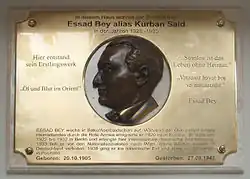 - ↑ Fuhrmann, Wilfried. Zur Vita von Essad-Bey (нем.). essadbey.de (1 октября 2007). — Биография. Дата обращения: 28 марта 2011. Архивировано 16 февраля 2012 года.