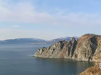 Северо-восточнее, примерно в 3,2 километрах от берега, расположена гора Амбарушка высотой 265 метров.