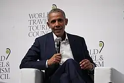 Бара́к Хуссе́йн Оба́ма II (англ. Barack Hussein Obama II, произносится [bəˈrɑːk huːˈseɪn oʊˈbɑːmə] амер.: о файле/bəˈrɑːk hˈsn ɵˈbɑːmə ði ˈsɛkənd/; род. 4 августа 1961, Гонолулу, Гавайи, США)[9] — американский государственный и политический деятель, 44-й президент США с 20 января 2009 по 20 января 2017. Лауреат Нобелевской премии мира 2009 года. Первый афроамериканец, выдвинутый на пост президента США от одной из двух крупнейших партий[10], и первый в национальной истории глав государства темнокожий президент.