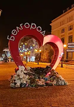 Уже на следующий день после удара в центре Белгорода у арт-объекта образовался стихийный народный мемориал в память погибших детей. Подобные места памяти были созданы и в других городах России[22].
