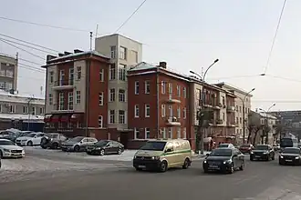 Цоколь и наружные стены сделаны из кирпича, междуэтажные перекрытия и внутриквартирные перегородки — из дерева. Крыша имеет стропильную конструкцию и покрыта железом.