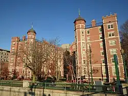 Маккормик-Холл (англ. McCormick Hall)[36], расположенный по адресу 320 Мемориал-драйв, является общежитием только для женщин, в котором проживают 237 студенток старших курсов. Оно состоит из двух 8-этажных башен (восточной и западной) и пристройки, сооружённой из двух соседних зданий из коричневого камня. Три секции соединены на первом этаже. В каждой башне есть пентхаус на верхнем этаже, откуда открывается вид на Бостон. В восточной башне есть только одноместные квартиры, а в западной — одноместные, двухместные и трёхместные. Средства на строительство Маккормик-Холл были получены от Кэтрин Декстер Маккормик (SB 1904, биология), ведущего биолога, суфражистки и филантропа начала XX века[37]. Маккормик-Холл был разработан для пропаганды и поощрения участия женщин в движении STEM, поддерживая гендерное равенство в прежней системе образования США[38].