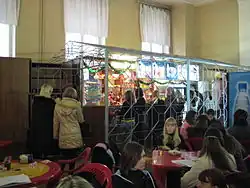 - Закусочная — предприятие питания с ограниченным ассортиментом блюд несложного приготовления, предназначенное для быстрого обслуживания посетителей. По ассортименту реализуемой продукции закусочные подразделяются на предприятия общего типа и специализированные: пельменную, сосисочную, блинную, пирожковую, пончиковую, чебуречную, шашлычную, чайную, рюмочную, пышечную и пр.; по типу реализации — закусочная, бистро, кафетерий и т. д.[2]