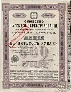| Основатели | «Российское страховое от огня Общество», «Второе Российское страховое от огня Общество», «Страховое от огня Товарищество Саламандра», «С.-Петербургская компания Надежда для морского, речного и сухопутного страхования, транспортирования кладей и страхования от огня имуществ»[1]. |