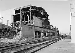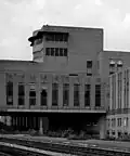 Утраченные в 1970-е годы служебные здания станции были оформлены в стилистике строгого ар деко с характерными высокими, узкими окнами[88]. Даже в одноэтажных служебных будках применялись непривычно высокие, щелевидные дверные проёмы и стильные оконные переплёты[74]. Особенно удачным получилось здание центральной котельной. Нарастающие уступами вверх прямоугольные объёмы, прорезанные щелями двусветных окон, и нависающая над ними гранёная труба производили впечатление декорации к «Метрополису»[89].