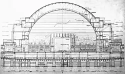 Ротонда вокзала — крупнейшее полукупольное сооружение мира до постройки Сиднейского оперного театра[77][78]. Полукупол образован двумя геометрическими формами — собственно полукуполом (четвертью сферы), и надвинутой на него полуциркульной фасадной аркой прямоугольного сечения.[77]. Высота внутреннего купола ротонды составляет 32,3 м, при ширине на уровне пола 54,8 м.[1].