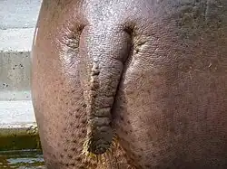 - У китов и бегемотов семенные железы самцов скрыты внутри тела. У китообразных они находятся в брюшной полости; у древних бегемотообразных копытных семенные железы находились в области паха, но также внутри. Бегемот, таким образом, рассматривается рядом специалистов как промежуточная стадия между этими древними копытными и китами.