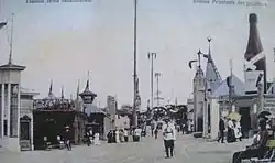 Третьего дня начал функционировать устроенный на выставке, у главного моста, «ТОПОГАН» (подвижной тротуар), автоматически перемещающий желающих за небольшую плату (2—3 коп.) с выставочной территории на верхнюю площадку моста и обратно.