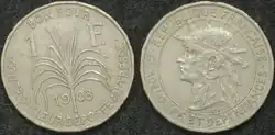 В 1903 году на Гваделупе были выпущены металлические боны в 50 сантимов и 1 франк. На реверсе бонов имелась надпись о том, что они обеспечены депозитами казначейства. Выпуск этих бонов был повторён в 1921 году[16].