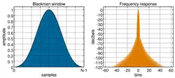 где N — ширина окна. Уровень боковых лепестков: −31.5 дБ.