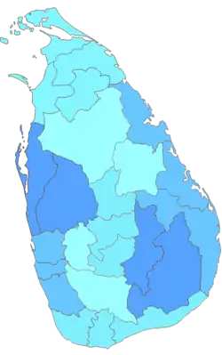 В 1955 году округа заменили провинции в качестве основных административных единиц страны.[16] Округ Ампара был создан в 1958 году, после были созданы округа Муллаитиву и Гампаха в 1978 году[17] по новой конституции, которая также вновь определила провинции в качестве основной административной единицы[18] Последним был создан округ Килиноччи в 1983 году,[19] и по действующей Конституции (1978 года) территория Шри-Ланки делится на 25 административных районов. Эти районы могут быть разделены или объединённых по решению Парламента Шри-Ланки.[20]