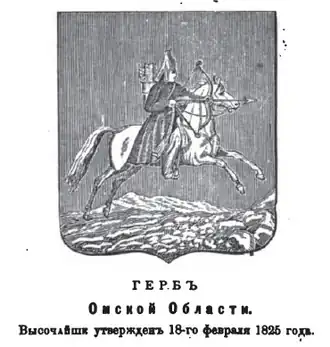 Спустя три года после образования Омской области, в царствование императора Александра I 18 февраля 1825 года был утверждён герб области[5]: