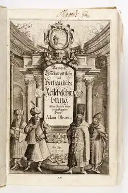 - ↑ Herzog August Bibliothek / Offt begehrte Beschreibung Der Newen Orientalischen Reise, So durch Gelegenheit einer Holsteinischen Legation an den Konig in Persien geschehen : Worinnen Derer Oerter vnd Lander, durch welche die Reise gangen, als furnemblich Rusland, Tartarien vnd Persien... — 1647
