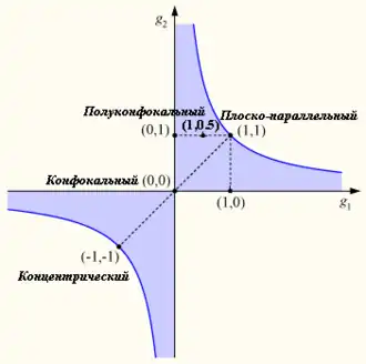 - — g-параметры резонатора (см. #Устойчивость резонатора)[1].