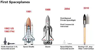 Фактически первым в истории из реализованных космопланов, совершавших суборбитальные пилотируемые космические полёты и на 20 лет единственной АКС, был американский гиперзвуковой самолёт-ракетоплан North American X-15 1960-х годов (13 его полётов выше 80 км (нормы США), а 2 из них, в которых была превышена граница космоса в 100 км (по мировым нормам ФАИ), — признаны суборбитальными пилотируемыми космическими полётами, а их участники — астронавтами).