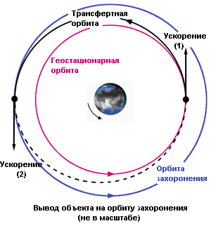 Для каждого аппарата орбита рассчитывается отдельно, минимальный перигей над геостационарной орбитой высчитывается по формуле: