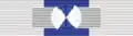 Орденская лента шёлковая муаровая белого цвета с широкой синей полосой по центру.