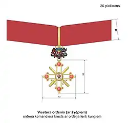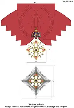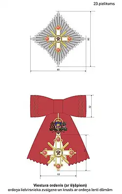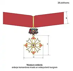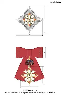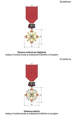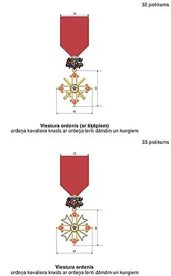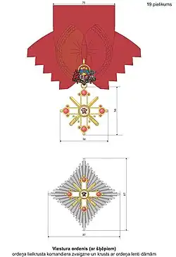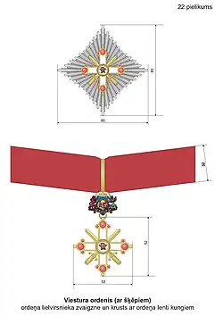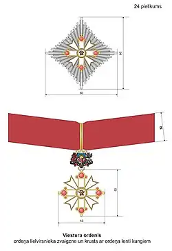 Орден Виестура имеет пять степеней и почётные знаки отличия трёх степеней: