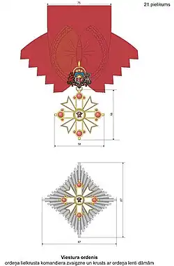 - Закон о национальных наградах Архивная копия от 17 ноября 2011 на Wayback Machine Латвии (содержит уставные рисунки знаков орденов Латвии).
