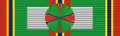 Орденская лента зелёного цвета с красными полосками по краям и в центре, обременённых жёлтыми полосками с чёрной полоской в центре.