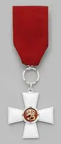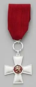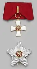 Большой крест ордена представляет собой знак, носимый на красной ленте через плечо. К знаку полагается серебряная пятиконечная звезда с позолоченными промежутками между лучами и позолоченным гербовым львом в центральном медальоне.