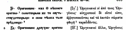 - Иоанн Дамаскин. О ста ересях вкратце. 63. Оригенисты